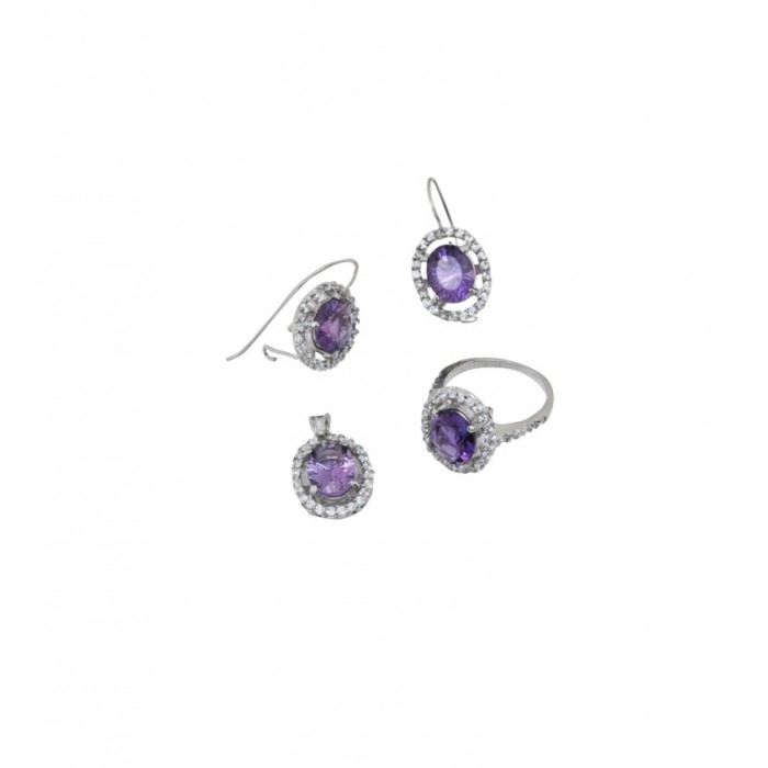 8*10 mm Oval Ametist Taşı ve kenarlar Cubic Zirkon ile çevrilidir.Küpe,Kolye ve Yüzükten oluşmaktadır.