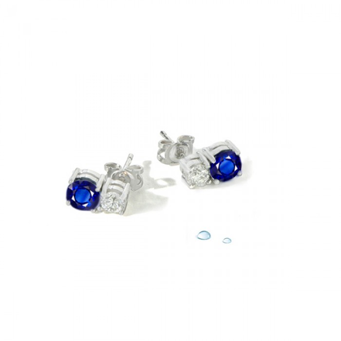 6 mm Yuvarlak Srilanka Safir Taş ve 5mm Swarovski Yuvarlak taş. Beyaz Altın uygulanmıştır.