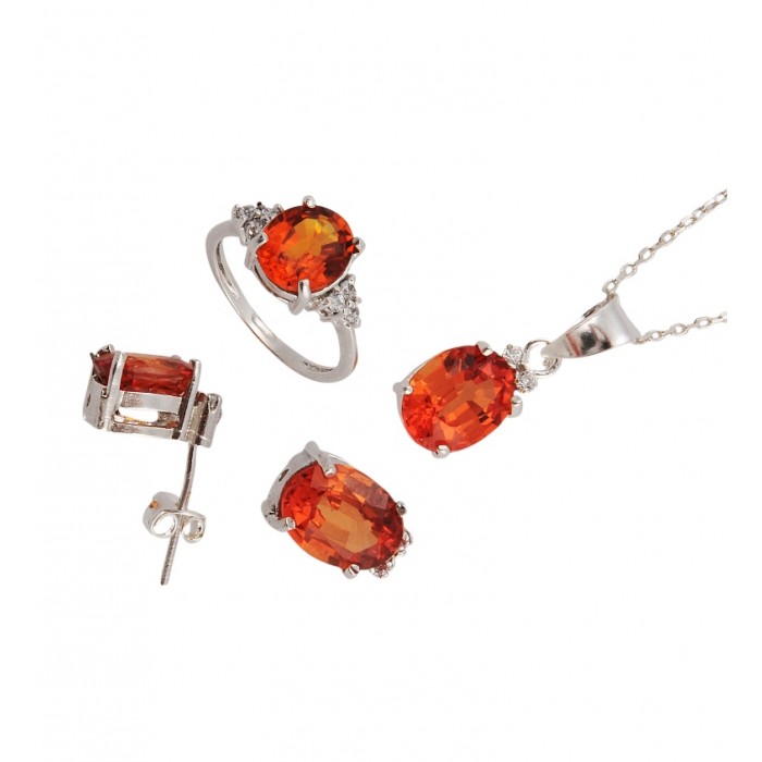 7*9 mm oval faset kesimli topaz tasi , 2 mm zirkon tas ile birlikte.set,kolye küpe ve yüzükten olusur.Kolye zincir uzunlugu 43 cm dir.